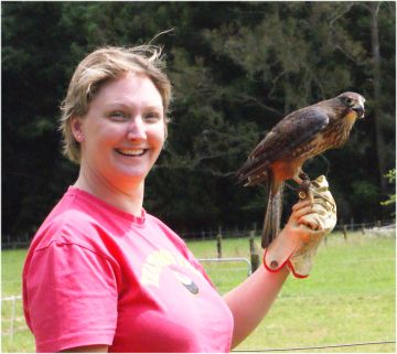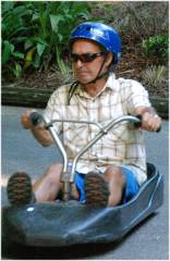 Above left; Deb with a New Zealand Falcon That helmet is just not my colour but the luge is a lot of fun |