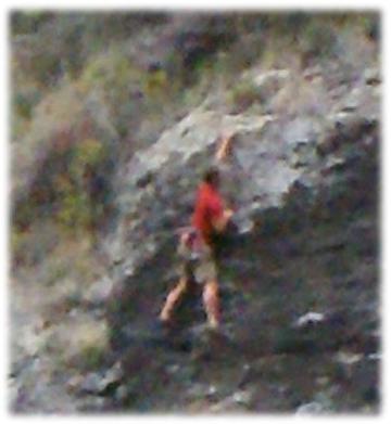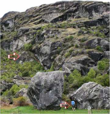 and icy weather. Yes, we are mad but I'm using a long lens here. It's much warmer at ground level. Everyone seems to be walking, biking, climbing etc, etc New Zealanders are not good at sitting around! Below: Left arrow points to the climber in pic 2, yes he is there ... this is huge country and this is the only way I can think of to show the scale of it all |