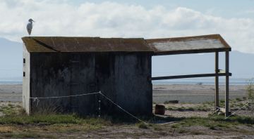 at Miranda Below, the bird hide, complete with white heron. |