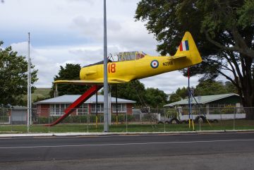 Back on the North Island ... Look closely at this plane. It's a children's playground slide but it is a real plane. How cool is that ! A house in the same village and typical of so many in NZ. Brick chimneys, tin roof, wood cladding and sash windows |