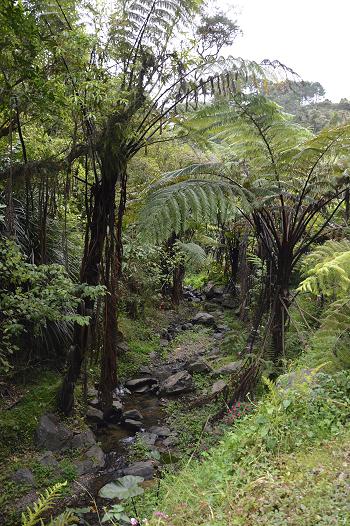 Kerikeri waterfall and bush at Lake Manuwai. Lots of tree ferns growing
