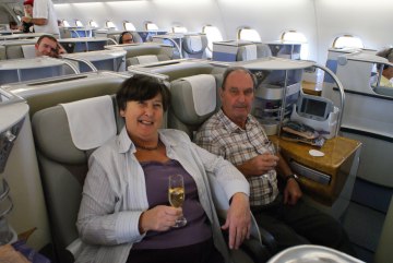 Airbus 380. Acres of plastic and a very odd configuration of seats, but a