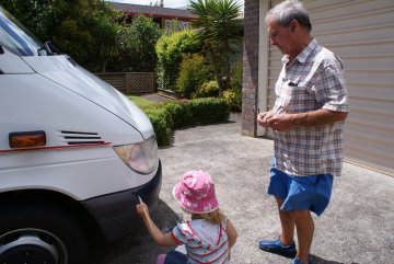Back in Auckland on grandchildren sitting duties we discovered that a good way to keep them still for a few seconds is the 'body outline' game. I like to think it might help with their art, as does letting them paint the camper ... a bit of bumper painting is never wasted. We'll introduce them to the polish next week.