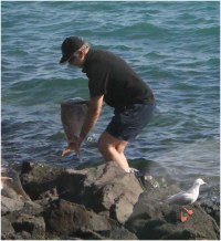 Matauri Bay had perfect weather and a good signal for the Vodem, which is Vodafonespeak for a dongle. Anyway, for those of you not familiar with either, here's a pic. It's the little white thing to the left of the keyboard. If there's a mobile signal, it will bring broadband internet into my laptop. Currently costing NZ$30 a month, that's less than £15. The campsite is expensive though, NZ$40 a night. Whatever would a hotel with this view charge? The second pic is at Pahi where I couldn't get even a mobile signal but the cost was NZ$20 a night and included a couple of flounder (delicious) and some fresh veg!