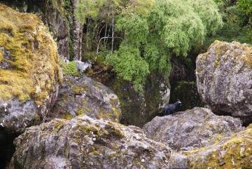 The foliage of the kauri trees is quite acidic. Over many thousands of years they helped water to cause erosion to the rocks and at Horeke the Wairere boulders were formed. This valley was discovered in the 1990s by the Swiss couple, Rita & Felix Schaad, who bought the land. They had lived there for 4 years before they discovered the valley full of incredible rocks! The goats are actually in the middle of the pic on the far left and give an idea of the size of the rocks. |