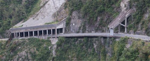 ![]() This part of the Arthur's Pass road includes a rock shelter and a waterfall diversion so that water falls beyond the edge of the road. It was just a dribble but usually quite a torrent we're told. Even the horses in New Zealand are friendly and came right across their field to say hello. |